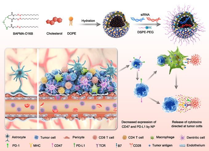 72) Shuhan Liu, Ji Liu, Haisong Liu,Kuirong Mao, Haorui Wang, Xiandi Meng, Jialiang Wang, Chenxi Wu, Hongmei Chen, Xin Wang, Xiuxiu Cong, Yue Hou, Ye Wang, Ming Wang*, Yong-guang Yang*, Tianmeng Sun*, A Novel Ionizable Cationic Lipid for Brain Tumor-targeted siRNA Delivery and Glioblastoma Immunotherapy, Biomaterials, 2022, 287, 121645.